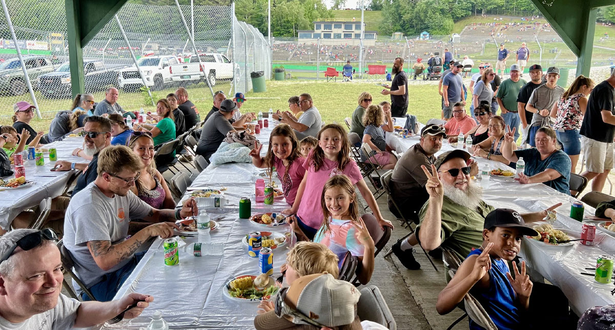 Great turnout last night for VSEA’s annual Day at the Races event at Thunder Road in Barre. Prior to the racing, VSEA members and their families are pictured here enjoying a barbecue dinner provided by VSEA.