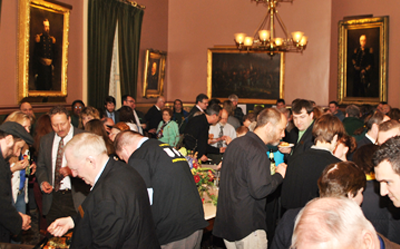 At 4:30 p.m., VSEA members hosted your union’s annual Legislative Open House in the Cedar Creek Room of the State House. This popular event allows members to talk with lawmakers in a casual and relaxed environment, although many the conversations this year were more serious due to the State’s ongoing threat to cut services and jobs if VSEA members don’t return soon to the table to talk. Not surprisingly, lawmakers received an earful from members about how much state employees have already given back and about how it’s now time to find new revenue to counter the State’s cuts-only mindset.