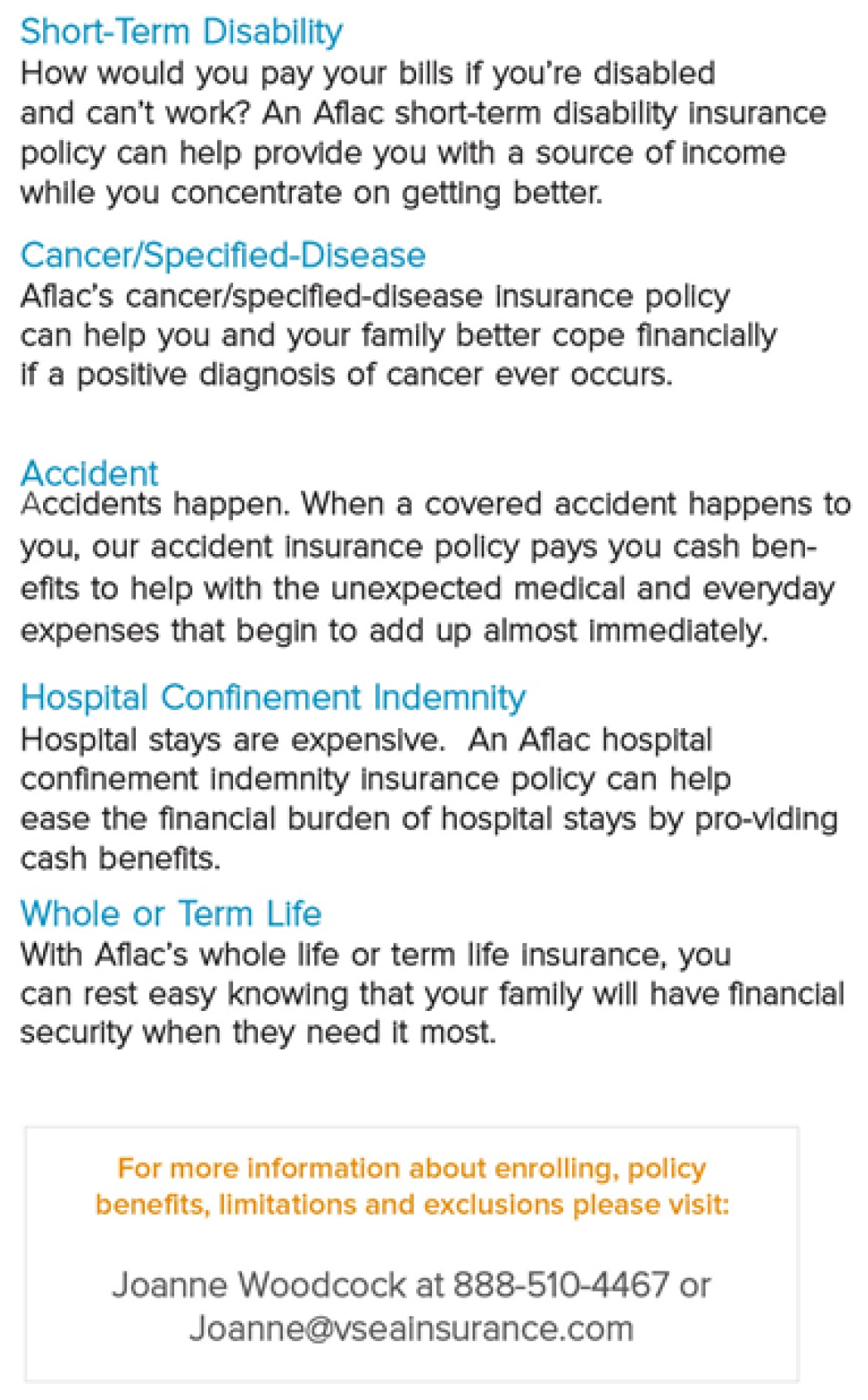 VSEA Insurance Benefits is now making the following Aflac insurance policies available to VSEA members!