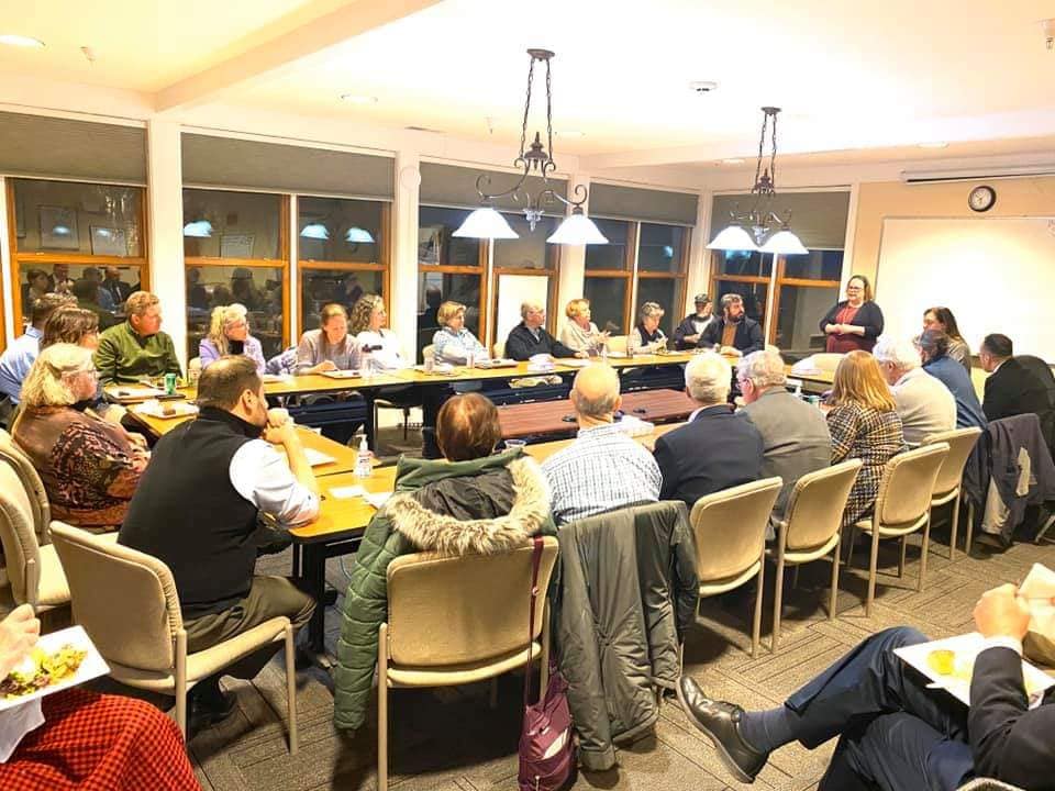 | Photo from last night’s VSEA Legislative Committee-sponsored issue-dinner meeting, where VSEA members and retirees educated lawmakers in attendance about staffing issues across state government. VSEA Legislative Committee Chair Margaret Crowley is addressing the group. |