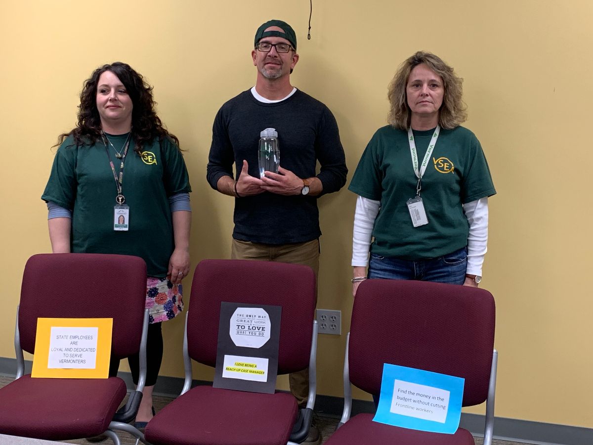 | VSEA ESD case managers in St. Albans depict life for Vermonters with full budget funding, versus life without it. |
