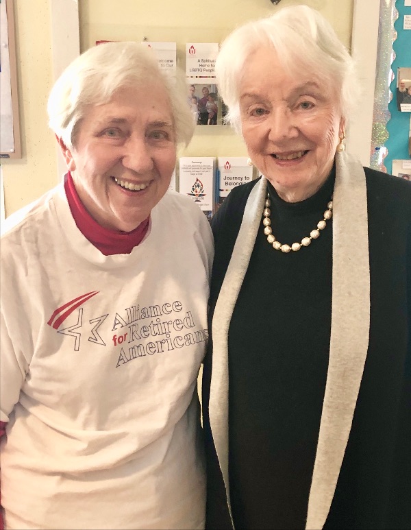 Jane Osgatharp (ARA tee) is pictured here with her final meeting’s main speaker, former Vermont Governor Madeline Kunin. Osgatharp says the photo is “very special to me.”