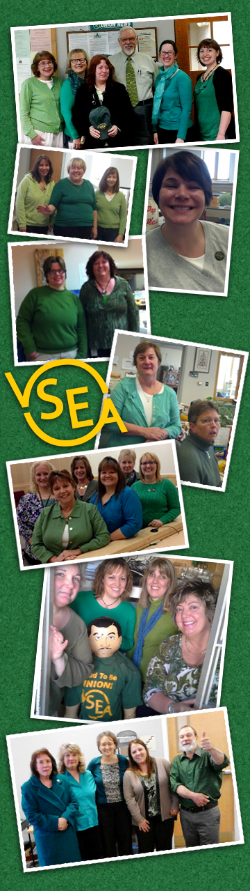 (Photo Above) Throughout the day, VSEA Judiciary members from several offices have been sending pictures of Judiciary workers wearing green to support their Bargaining Team. Offices represented in the photos include: Barre, Bennington, Franklin, Addison and White River Junction. Thanks for sending the photos!