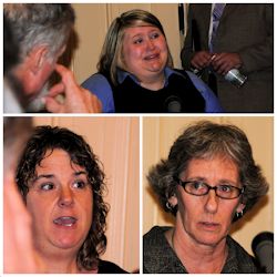 VSEA Dispatchers Sarah Copen (top), Trish Bennett (bottom left) and Elizabeth Tracy (bottom right) testified in support of a bill to allow DPS dispatchers and VVH direct-care providers to retire at age 55, with 20 years service.