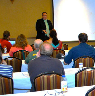 Pictured here is the State’s Deputy Director of Health Care Reform, Michael Costa, addressing the group about the cadillac tax and a report on its impact that he is preparing for legislators.